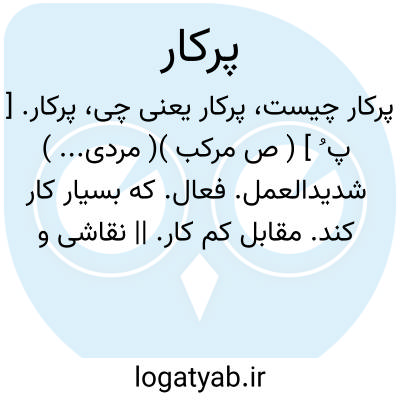 پرکار. [ پ ُ ] ( ص مرکب )( مردی... ) شدیدالعمل. فعال. که بسیار کار کند. مقابل کم کار. || نقاشی و قلمزنی و قلابدوزی و گلدوزی و تذهیب و گچ بری... و امثال آن که در آن کار بسیار کرده اند. مقابل کم کار. || نقاش ( ؟ ). ( رشیدی ). || مشغول. پرمشغله ؟: