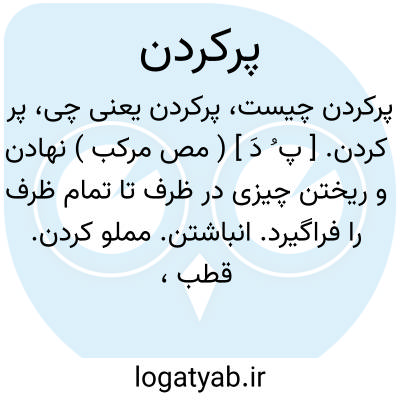 ( مصدر ) ۱- نهادن و ریختن چیزی در ظرف تا هم. ظرف را فرا گیرد انباشتن مملو کردن ممتلی کردن مشحون کردن. ۲- بسیار انجام دادن بسیار کردن: کار نیکو کردن از پر کردن است. ۳- اشغال کردن مشغول کردن. ۴- اشباع در حرکت: ( استکان...در اصل استکن بود پر کردند استکان شد. ) ( منتهی الارب ) یا پر کردن تفنگ ( توپ و مانند آن ). باروت و گلوله یا فشنگ در آن نهادن. یا پر کردن دندان. تراشیدن قسمتهای کرم خورده و فاسد دندان و ممتلی کردن آن با سیمان و پلاتین و مانند آن. یا پر کردن قوه باطری و مانند آن. آنرا در جریان برق قرار دادن تا برق در آن ذخیره شود. یا پر کردن شکم. پر کردن معده. ممتلی کردن معده. یا کسی را پر کردن. با گفتار او را بدشمنی دیگری بر انگیختن نزد او از دیگری بدگویی کردن.
