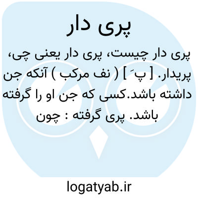 ( صفت ) ۱- آنکه جن او را گرفته باشد جن دار جن گرفته پی گرفته. جمع: پریداران. ۲- دختری دوشیزه که زنان جادو افسانها خوانده بر او دمند تا پری در بدن او در آید و آن اثنا از مغیبات خبر دهد. ۳- دیوانه مجنون. ۴- جا و مقام دیو.