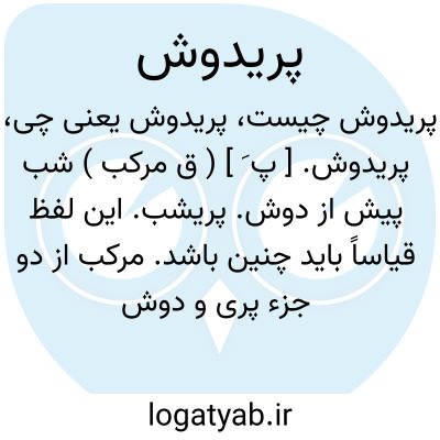 پریدوش. [ پ َ ] ( ق مرکب ) شب پیش از دوش. پریشب. این لفظ قیاساً باید چنین باشد. مرکب از دو جزء پری و دوش اما در فرهنگها پرندوش است و پریدوش دیده نشده است. مرحوم ادیب پیشاوری راست:
