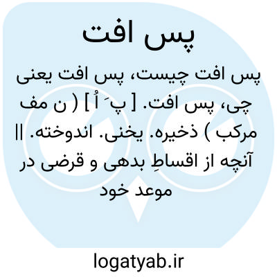 پس افت. [ پ َ اُ ] ( ن مف مرکب ) ذخیره. یخنی. اندوخته. || آنچه از اقساطِ بدهی و قرضی در موعد خود پرداخته نشده باشد.
