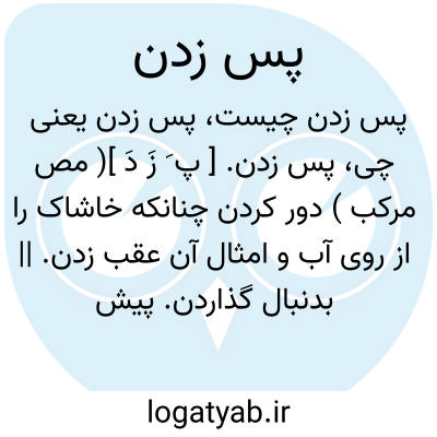 پس زدن. [ پ َ زَ دَ ]( مص مرکب ) دور کردن چنانکه خاشاک را از روی آب و امثال آن عقب زدن. || بدنبال گذاردن. پیش افتادن از همکاران: همه هم درسان خود را پس زده است.
