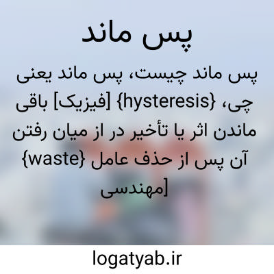 پدیده ای در رفتارهای الکترومغناطیسی و کشسانی مواد. در این پدیده، بین اِعمال نیرو و پیامد اعمال نیرو یا بین حذف نیرو و پیامد حذف نیرو عقب ماندگی و تأخیر پدید می آید. اگر میدان مغناطیسی اعمال شده به ماده ای مغناطیسی در ابتدا افزایش یابد و سپس، با کاهش آن به مقدار اولیه اش بازگردد، میدان مغناطیسی در داخل ماده به مقدار اولیه اش بازگشت نخواهد کرد. در این صورت، میدان داخلی نسبت به میدان خارجی تأخیر و عقب ماندگی خواهد داشت. هنگامی که نمونه ای پیاپی تحت تأثیر مغناطش و وامغناطش قرار می گیرد، این پدیده منجر به اتلاف انرژی سیستم می شود که به اتلاف پس ماندی معروف است. به این ترتیب، لازم است موادی که به منزلۀ هسته در مبدل ها و آهنرباهای الکتریکی به کار می روند، دارای اتلاف پس ماندی کم باشند. در بعضی مواد که تحت تأثیر میدان های الکتریکی متغیر قرار می گیرند، رفتارهایی مشابه مشاهده می شود (پس ماند الکتریکی). هنگامی که نیروی متغیری پیاپی بر جسمی کشسان وارد شود و آن را تغییرشکل دهد، پس ماند کشسانی رخ می دهد. در این حالت، وقتی جهت نیرو عکس شود، تغییرشکل پدید آمده کاملاً ناپدید نمی شود که به معنی اتلاف انرژی در تغییرشکل های پیاپی است.