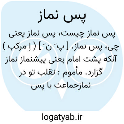 پس نماز. [ پ َ ن َ ] ( اِ مرکب ) آنکه پشت امام یعنی پیشنماز نماز گزارد. مأموم: تقلب تو در نمازجماعت با پس نمازانت. ( تفسیر ابوالفتوح ج 4 ص 141 ).