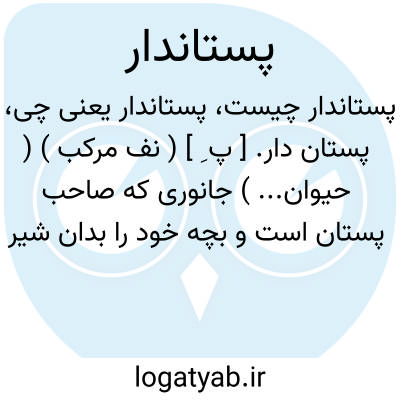 پستان دار. [ پ ِ ] ( نف مرکب ) ( حیوان... ) جانوری که صاحب پستان است و بچه خود را بدان شیر دهد. پستانداران. دوده حیواناتی که بچه های خود را شیر دهند. ذوات الثدی.