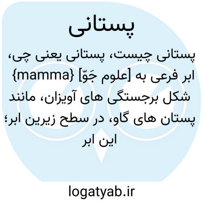 {mamma} [علوم جَوّ] ابر فرعی به شکل برجستگی های آویزان، مانند پستان های گاو، در سطح زیرین ابر؛ این ابر فرعی اکثراًًً همراه با پرسا و پرساکومه ای و پرساپوشنی و پوشن کومه ای و کومه ای بارا می آید