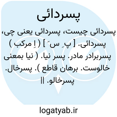 پسردائی. [ پ ِ س َ ] ( اِ مرکب ) پسربرادر مادر. پسر نیا. ( نیا بمعنی خالوست. برهان قاطع ). پسرخال. پسرخالو. || پسر نیای پدری.