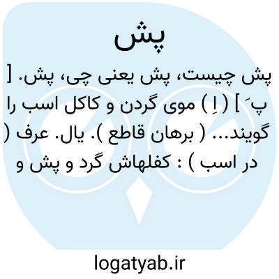 پش. [ پ َ ] ( اِ ) موی گردن و کاکل اسب را گویند... ( برهان قاطع ). یال. عرف ( در اسب ):