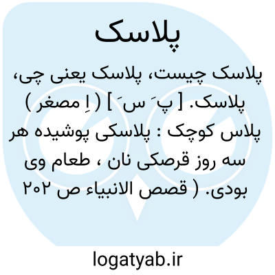 پلاسک. [ پ َ س َ ] ( اِ مصغر ) پلاس کوچک: پلاسکی پوشیده هر سه روز قرصکی نان، طعام وی بودی. ( قصص الانبیاء ص 202 ). || فلاکت و نکبت باشد. ( برهان قاطع ). بدبختی. تنگی: