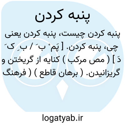 پنبه کردن. [ پَم ْ ب َ / ب ِ ک َ دَ ] ( مص مرکب ) کنایه از گریختن و گریزانیدن. ( برهان قاطع ) ( فرهنگ خطی ). واریشتن. رشته را باز کردن بصورت پنبه. || پریشان و پراکنده ساختن و متفرق گردانیدن. ( برهان قاطع ). متفرق کردن. ( فرهنگ خطی ):