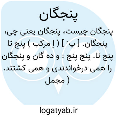 پنجگان. [ پ َ ] ( اِ مرکب ) پنج تا پنج تا. پنج پنج: و ده گان و پنجگان را همی درخواندندی و همی کشتند. ( مجمل التواریخ و القصص ). || ظاهراً نوعی تیر: و امرهم ان تکون قسیهم مُوتَّرةً و قال اذا امرتکم ان ترموا فارموهم رشقاً بالبنجکان و لم یکن اهل الیمن راوا النشّاب قبل ذلک. ( تاریخ طبری، قصه یمن و وهزر ). و نیز رجوع به پنجکیه شود.