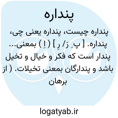 پنداره. [ پ ِ رَ/ رِ ] ( اِ ) بمعنی... پندار است که فکر و خیال و تخیل باشد و پندارگان بمعنی تخیلات. ( از برهان قاطع ).