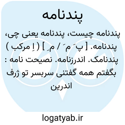 پندنامه ست ترا دفتر اشعارش.ناصرخسرو.|| نامه مشتمل بر پند و نصیحت: به پندنامه و رسول شغل گرگانیان راست شود. ( تاریخ بیهقی چ ادیب ص 454 ).