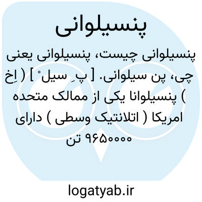 پن سیلوانی. [ پ ِ سیل ْ ] ( اِخ ) پنسیلوانا یکی از ممالک متحده امریکا ( اتلانتیک وسطی ) دارای 9650000 تن سکنه. پایتخت آن هاریس برگ و شهرهای عمده آن پیتس برگ و فیلادلفی است. دارای معادن ذغال سنگ و صنایع فلزسازی است.