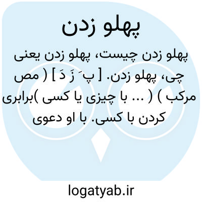 ( مصدر ) پهلو زدن با چیزی یا کسی. برابری کردن با وی پهلو ساییدن مقابله کردن: با بزرگان بزرگان جهان پهلو زدی ابله آن کس که بخواری جنگ با خارا کند. ( منوچهری ) یا با چرخ ( آسمان فلک ) پهلو زدن. ۱- سر به آسمان سودن بسی رفیع و بلند بودن: آن قصر که با چرخ همی زد پهلو بر درگه او شهان نهادندی رو... ( خیام ) ۲-بسیار بلند مقام و ارجمند بودن.