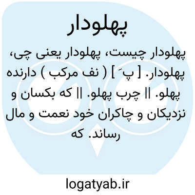 ( صفت ) ۱- دارند. پهلو:دارند. جانب. ۲- چرب پهلو پهلو چرب. ۳- آنکه بکسان و نزدیکان خود نعمت و مال رساند کسی که بزیز دستان خود سود رساند: روزگاریست ز ابنای زمان غیر سخن هیچکس را نشنیدم که بود پهلو دار. ( ظهوری ) ۴- واحدی از سربازان که در طرفین ( راست و چپ ) عمده قوی مامور مراقبت و نگهبانی هستند. یاحرف ( سخن کلام ) پهلو دار. سخنی که گزندگی و دشنامی در ضمن داشته باشد کلامی متضمن معنیی تند و گزنده: گر گشایی در چمن بند قبا گاه خرام بشنوی از لاله و گل حرف پهلو دار سرد. ( اسیر.لغ. ) یا عیش پهلو دار.عش ثابت و پایدار: غم بسی را کرده صاحب دستگاه پشت کس بر عیش پهلو دار نیست. ( ظهوری )