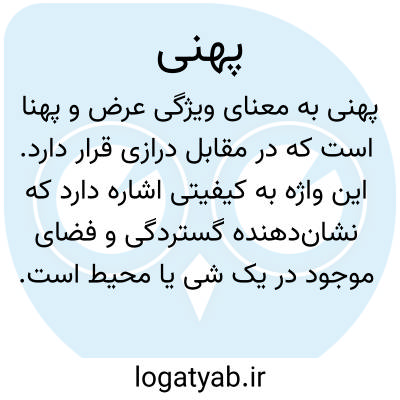 (پَ ) (حامص. ) ۱ - وسعت، گشادگی. ۲ - عرض، پهنا. مق درازی، طول.
