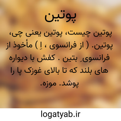 پوتین. ( از فرانسوی، اِ ) مأخوذ از فرانسوی ِ بتین. کفش با دیواره های بلند که تا بالای غوزک پا را پوشد. موزه. نیم چکمه.