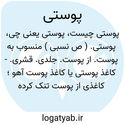 ( صفت ) منسوب به پوست.۱- جلدی قشری. یا کلاه پوستی. کلاهی که از پوست بره و بیشتر برنگ سیاه سازند. یا کاغذ پوستی. کاغذی که از پوست نازک ( مانند پوست آهو ) سازند قسمی کاغذ شفاف و محکم و شکننده. ۲- پوست فروش.۳- آنکه پوست کوکنار خورد ( در هند و ایران معمول بوده ). ۴- تریاکیافیونی.۵- تنیلکاهل و سست.