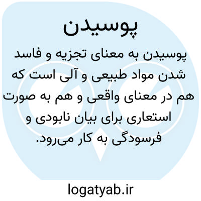 پوسیدن به معنای فاسد شدن، تجزیه و از بین رفتن مواد آلی است که معمولاً در نتیجه گذشت زمان، شرایط نامساعد و فعالیت میکروبها یا عوامل محیطی رخ میدهد. این واژه بیشتر در مورد مواد غذایی، گیاهان، چوب، و اجسام طبیعی به کار میرود که به تدریج کیفیت و ساختار خود را از دست میدهند و بافت آنها نرم و فاسد میشود. فرآیند پوسیدن معمولاً با تغییر رنگ، بافت، بو و ظاهر ماده همراه است و نشاندهنده از بین رفتن تازگی و سلامت آن است. پوسیدن در طبیعت یک فرایند زیستی مهم محسوب میشود، زیرا باعث بازگشت مواد مغذی به خاک و چرخه طبیعی اکوسیستم میگردد. در متون ادبی و استعاری، این واژه برای توصیف نابودی، فرسودگی، زوال و فساد اخلاقی یا اجتماعی نیز به کار میرود و بار معنایی منفی دارد. پوسیدن میتواند باعث تولید بوهای ناخوشایند و انتشار میکروبها شود و در نتیجه از نظر بهداشتی و سلامتی خطرناک باشد. این واژه اغلب با مفاهیمی مانند فساد، زوال، تخریب و عدم دوام همراه است و بر گذر زمان و اثر مخرب آن تأکید دارد.