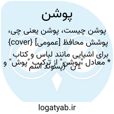 {cover} [عمومی] پوشش محافظ برای اشیایی مانند لباس و کتاب * معادل "پوشن" از ترکیب "پوش" و "ـَ ن" (پسوند اسم ابزارساز ) ساخته شده است.