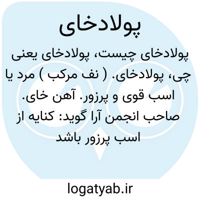 ( پولاد خا ی ) ( صفت ) قوی پر زور ( مرداسب ) آهن خای ( وقتی اسب مستعد دویدن است لگام و دهنه را میخاید ): [ ز آواز او اندر آید ز جای دل مرد جنگی پولاد خای. ] ( فردوسی )