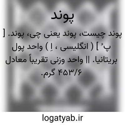 پوند. [ پ ُ ] ( انگلیسی، اِ ) واحد پول بریتانیا. || واحد وزنی تقریباً معادل 453/6 گرم.