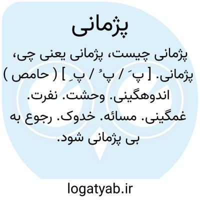 پژمانی. [ پ َ / پ ُ / پ ِ ] ( حامص ) اندوهگینی. وحشت. نفرت. غمگینی. مسائه. خدوک. رجوع به بی پژمانی شود.