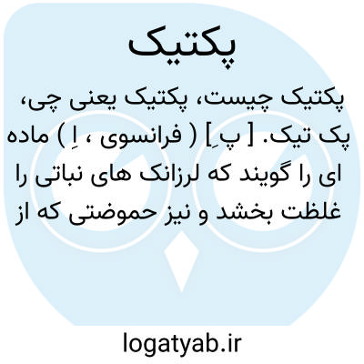 پک تیک. [ پ ِ] ( فرانسوی، اِ ) ماده ای را گویند که لرزانک های نباتی را غلظت بخشد و نیز حموضتی که از تأثیر جسم قلیائی بر «پک تین » حاصل آید.