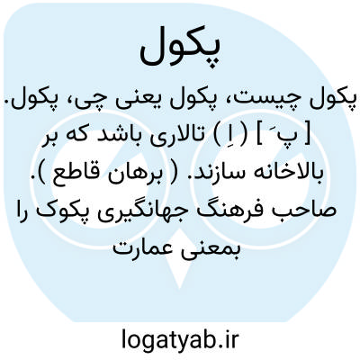 پکول. [ پ َ ] ( اِ ) تالاری باشد که بر بالاخانه سازند. ( برهان قاطع ). صاحب فرهنگ جهانگیری پکوک را بمعنی عمارت عالی آورده است و ظاهراً لفظ پکوک محرف پکول است.