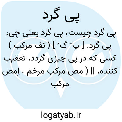 پی گرد. [ پ َ گ َ ] ( نف مرکب ) کسی که در پی چیزی گردد. تعقیب کننده. || ( مص مرکب مرخم، اِمص مرکب ) پی گشت. گشتن در پی چیزی.