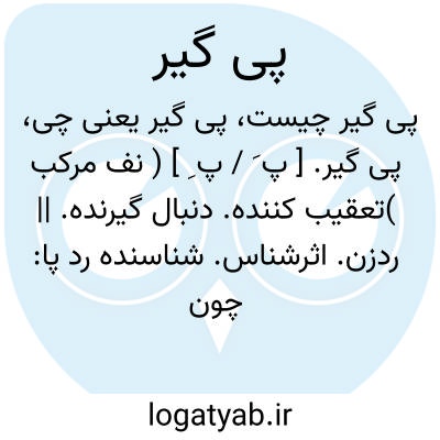 پی گیر. [ پ َ / پ ِ ] ( نف مرکب )تعقیب کننده. دنبال گیرنده. || ردزن. اثرشناس. شناسنده رد پا: چون سرافةبن مالک آنجا ( غار ثور ) رسید و او پی گیری هول بود. ( تفسیر ابوالفتوح چ 1 ج 2 ص 592 ). || مداوم. مُصِر. اصرارورزنده.