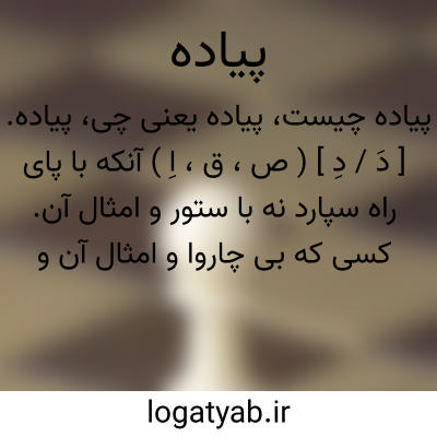 (دِ ) (ص. اِ. ) ۱ - کسی که با پای راه می رود و سواره نیست. ۲ - بخشی از ارتش که سواره نیستند. ۳ - ضعیف، مسکین. ۴ - یکی از مهره های شطرنج. ۵ - عامی، بی سواد.