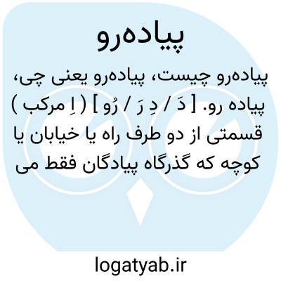۱- ( اسم ) قسمتی از دو جانب یا جاده که معبر پیادگان است مقابل سواره رو. ۲-( صفت ) آنکه با پای خود رود کسی که بی مرکب حرکت کند: مردم پیاده رو را حال بتراز این بود.