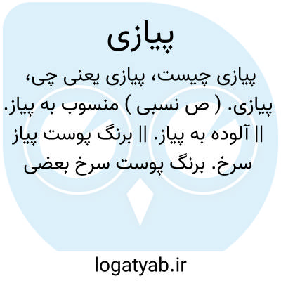 ( صفت ) منسوب به پیاز. ۱- آلوده به پیاز. ۲- برنگ پوست پیاز سرخ پیازکی. یا لعل پیازی. لعل پیازکی: دریا گند نارنگ از تیغ شاه گلگون لعل پیازی از خون یک یک پشیز والش. ( خاقانی ) ۳- نوعی از گرز پیازک. ۴- جگر و شش گوسفند که با پیاز سرخ کنند و خورند.یا پوست پیازی. ۱- ورق. نازک روی پیاز. ۲- سخت بی دوام و نازک.