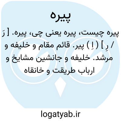 پیره. [ رَ / رِ ] ( اِ ) پیر. قائم مقام و خلیفه و مرشد. خلیفه و جانشین مشایخ و ارباب طریقت و خانقاه نشین باشد. ( برهان ). خلیفه مشایخ و ارباب طریقت را گویند و چون یکی از مریدان بی طریقتی کند او را چوب طریق بزند. ( جهانگیری ):