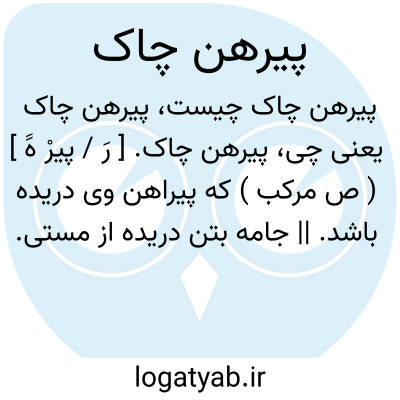 ( صفت ) ۱- آنکه پیراهن وی دریده و چاکدار باشد. ۲- جامه بتن دریده از مستی: زلف آشفته و خوی کرده و خندان لب و مست پیرهن چاک و غزلخوان و صراحی در دست. نرگسش عربده جوی و لب افسون کنان نیمشب دوش ببالین من آمد بنشست... ( حافظ )