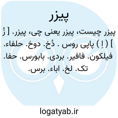 ( اسم ) ۱- نوعی جگن که در آب روید لوخ رخ حلفائ فیلکون پاپیروس. توضیح هر چیز سست بی دوام را بدان تشبیه کنند و آن بکار پر کردن پالان حیوانات و ساختن باد زن آید: باد زن گاهی تواند دست او را بوسه داد کاش ما هم اعتبار پیزری میداشتیم. ( حمیدی طهرانی ) ۲- مطلق حشواز پیزر و غیر آن. یا پیزر به ( در لای ) پالان کسی گذاشتن. بدروغ و چاپلوسی ویرا فریفتناو را بمتملق ستودن هندوانه زیر بغل وی نهادن.یا پیزر در جوال گذاشتن. در حقه بازی و فریب دادن مهارت داشتن.