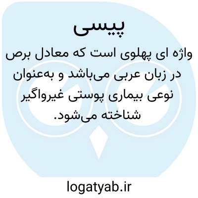 [ویکی فقه] پیسی واژه ای پهلوی و معادل بَرَص در عربی گونه ای بیماری پوستی و ناواگیر است که به صورت لکه های سفید و نرم بر بدن ظاهر می شود و بر اثر اختلال در عملکرد رنگدانه های پوستی پدید می آید.