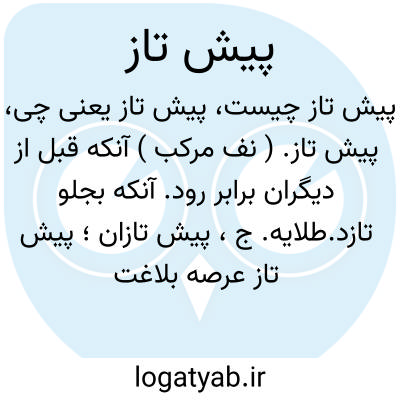 پیش تاز. ( نف مرکب ) آنکه قبل از دیگران برابر رود. آنکه بجلو تازد.طلایه. ج، پیش تازان؛ پیش تاز عرصه بلاغت یا شجاعت.