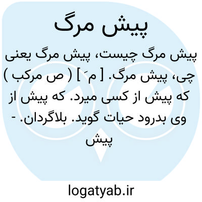 پیش مرگ. [ م َ ] ( ص مرکب ) که پیش از کسی میرد. که پیش از وی بدرود حیات گوید. بلاگردان.