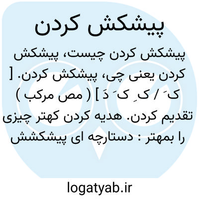 ( مصدر ) تقدیم کردن کوچکتر ببزرگتر هدیه ای را: دستارچه ی پیشکشش کردم گفت: وصلم طلبی زهی خیالی که تراست. ( حافظ )