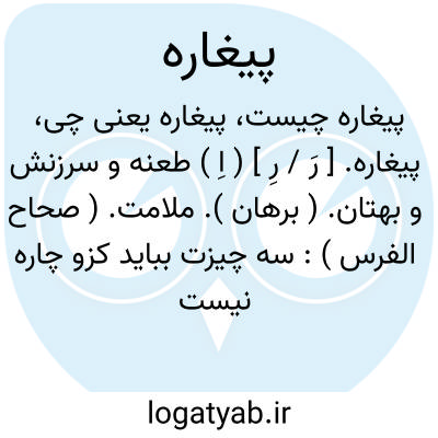 طعنه، سرزنش، ملامت: سه چیزت بباید کزاو چاره نیست / وز آن نیز بر سرت پیغاره نیست (فردوسی: ۴/۴ ).