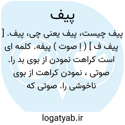 پیف. [ پیف ف ] ( اِ صوت ) پیفه. کلمه ای است کراهت نمودن از بوی بد را. صوتی، نمودن کراهت از بوی ناخوشی را. صوتی که گاه کراهت از بوی بداداکنند. کلمه ای نمودن اکراه را از بوئی عفن. صوتی که از آن نفرت و کراهت از استشمام بوئی بد نمایند.