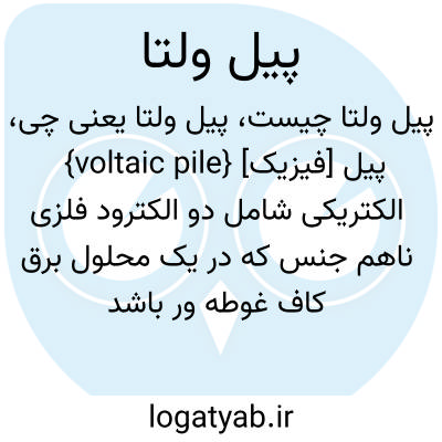 {voltaic pile} [فیزیک] پیل الکتریکی شامل دو الکترود فلزی ناهم جنس که در یک محلول برق کاف غوطه ور باشد