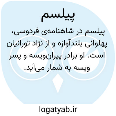 پیلسم. [ س َ ] ( اِخ ) نام برادر پیران ویسه از پهلوانان لشکر افراسیاب تورانی. وی به دست رستم کشته شد: