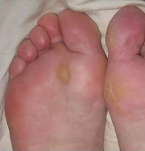 پوست کلفت و ضخیم شدة کف دست در اثر کار زیاد.