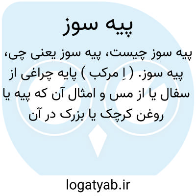 پیه سوز. ( اِ مرکب ) پایه چراغی از سفال یا از مس و امثال آن که پیه یا روغن کرچک یا بزرک در آن ریختندی با فتیله ای از پنبه. پایه مسین و برآن چراغی سفالین و درآن چراغ روغن کرچک یا بزرک و پلیته ای که بشب می افروختند. ظرفی که در آن پیه سوزند. ( آنندراج ). استوانه سفالین یا مسین یا زرین و یا سیمین و غیره که بصورت گل و غیره کردندی و چراغ را که باروغن کرچک و یا بزرک سوختی بالای آن نهادندی. بیسوس ( معرب آن است ). پی سوز. چراغدان. چراغ روغنی قدیم و شمعدان پیهی قدیم. ( فرهنگ نظام ). پیه دان: