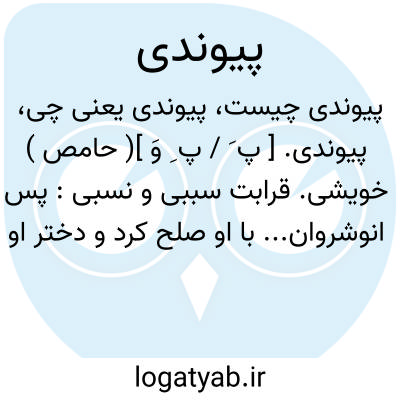 پیوندی. [ پ َ / پ ِ وَ ]( حامص ) خویشی. قرابت سببی و نسبی: پس انوشروان... با او صلح کرد و دختر او را بخواست و قرار دادند که ماوراءالنهر یا فرغانه انوشروان را باشد بسبب پیوندی... ( فارسنامه ابن البلخی چ اروپا ص 94 ).