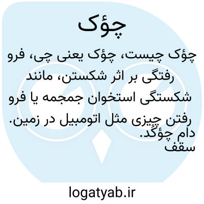 فرو رفتگی بر اثر شکستن، مانند شکستگی استخوان جمجمه یا فرو رفتن چیزی مثل اتومبیل در زمین. دام چؤکُد. سقف فرو ریخته.